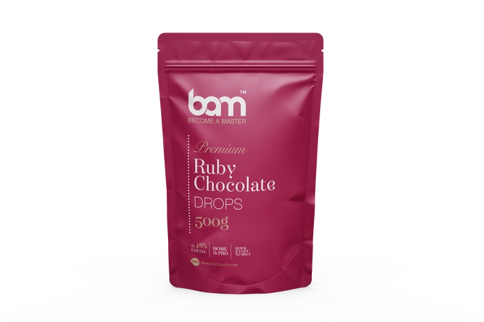 El chocolate BAM Ruby (500 g) es especial por su color rosa natural, que no se debe a colorantes, sino que procede de un tipo único de haba de cacao. Este cacao crece en regiones seleccionadas del mundo y produce un chocolate completamente diferente de las variedades clásicas de chocolate.