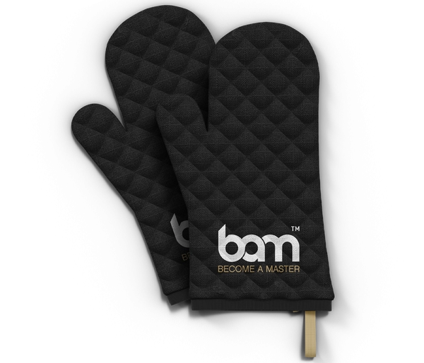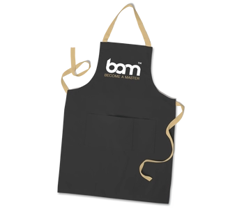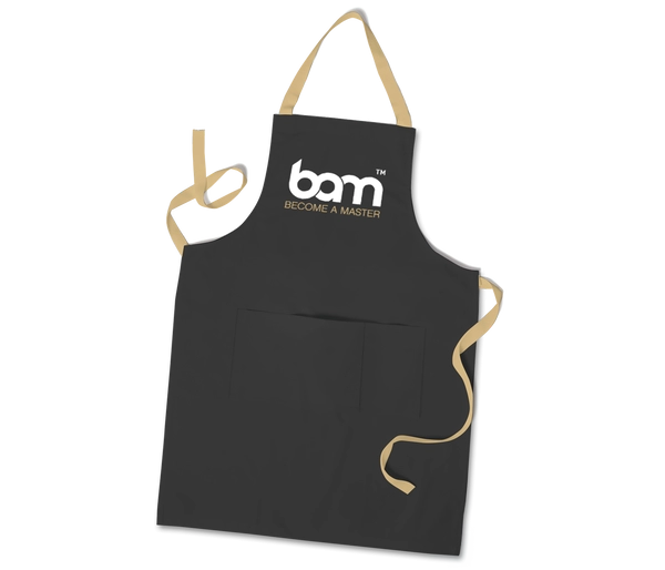 Hemos puesto el delantal BAM y el guante de repostería en una bolsa de la compra de algodón BAM para crear un paquete que hará las delicias de cualquier pastelero. Con su aspecto moderno y el logotipo BAM Become A Master, el delantal BAM se convertirá en tu accesorio de cocina favorito. Tiene un elegante color negro que refleja su aspecto moderno, complementado con tiras en dorado barroco que se pueden llevar alrededor de la cintura y el cuello a su gusto. El paquete también incluye un guante de cocina resistente al calor, al que también hemos añadido un logotipo BAM bordado. El delantal, el guante y la bolsa están hechos de algodón 100%. El paquete es adecuado tanto para mujeres como para hombres pasteleros.
