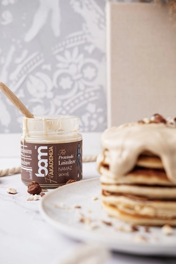 La proteína deavellana para untarBAM (200 g) es para todos los panaderos caseros, chefs profesionales o pasteleros que quieran añadir la guinda al pastel con una deliciosa proteína para untar y para todas las personas activas que quieran disfrutar de ricos sabores de una forma sana y nutritiva.