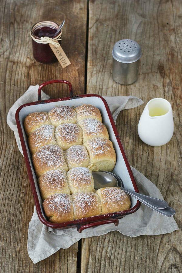 - Asegúrese de untar los panecillos con mantequilla derretida antes de colocarlos uno al lado del otro. De este modo, será más fácil desmontarlos después de hornearlos.