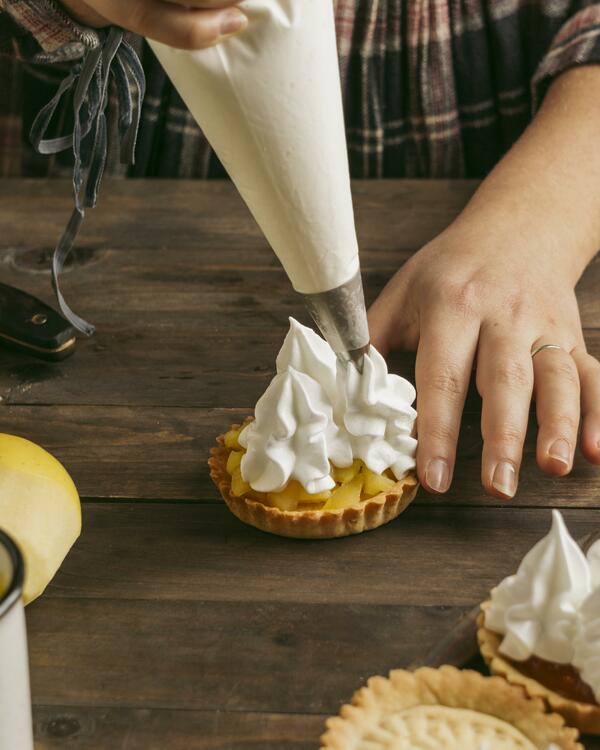 Consejo BAM: si vas a servir la crema bávara en moldes, no los dejes demasiado tiempo en agua caliente. Si lo hace, se licuará más gelatina y la crema bávara empezará a perder su estructura asentada. Entre 30 y 45 segundos serán suficientes.