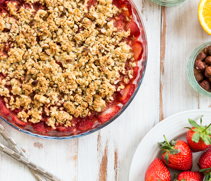 Disfrute de una deliciosa tarta casera de fresas con crumble crujiente de avena. Esta sencilla receta combina fresas frescas con una rica mezcla de crujientes copos y edulcorante natural sin calorías BAM, horneados hasta conseguir un dorado perfecto.