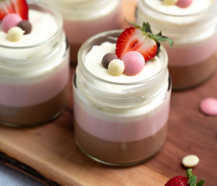 @bamchocolate.com ¡Recrea el sabor de la nostalgia del helado! ? Piérdete en un paraíso de chocolate que experimentarás con cada bocado de mousse de chocolate. INGREDIENTES: 510 g de nata para montar 135 g de chocolate con leche BAM 135 g de chocolate con fresa BAM 135 g de chocolate blanco BAM 6 hojas de gelatina Decoración al gusto (por ejemplo, fresas frescas, pepitas de chocolate, galletas) RECETA: PASO 1 Montar 120 g de nata hasta obtener una crema homogénea. PASO 2 Remojar las hojas de gelatina en agua fría y dejarlas reposar durante 10 minutos. PASO 3 Derretir el chocolate con leche e incorporar 50 g de nata tibia hasta obtener una mezcla homogénea. Remover hasta que el chocolate esté completamente fundido. PASO 4 Añadir la gelatina fundida rallada a la mezcla de chocolate templado y mezclar bien. Inmediatamente después, incorporar suavemente la nata montada. PASO 5 Prepara los tarros y rellénalos con la mousse de chocolate. Mételos en la nevera. PASO 6 Repite el proceso con BAM de fresa y BAM de chocolate blanco. De este modo se crean bonitas capas multicolores. PASO 7 Deja los postres en la nevera durante unas horas para que la mousse se endurezca. Antes de servir, decora los vasos al gusto, por ejemplo con fresas frescas, trocitos de chocolate o nata montada. ¡Que aproveche! ✨ #chocolatemousse #mousse #chocoholic #desserttiktok #bamchocolate