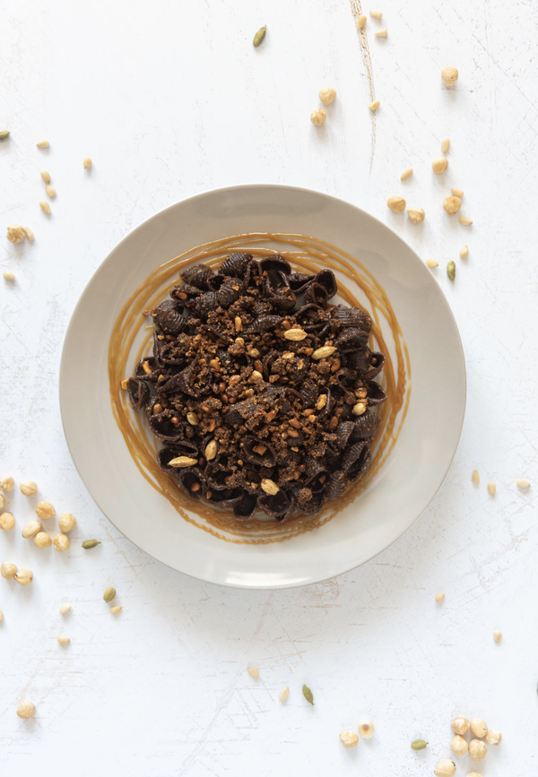 ingredientes para pasta de chocolate en salsa dulce con nueces