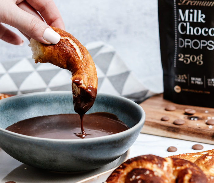 Si le gustan los postres sencillos pero deliciosos, ¡estos pretzels de chocolate son perfectos para usted! Suaves y ligeramente salados, los pretzels cubiertos con chocolate con leche BAM crean el equilibrio perfecto de sabores. El proceso consiste en hacer una masa básica de levadura, darle forma y hornear, lo que puedes hacer sin grandes conocimientos de cocina. Y con la cobertura de chocolate, lo llevas todo al siguiente nivel: las notas de chocolate con leche combinan a la perfección con la corteza salada.
