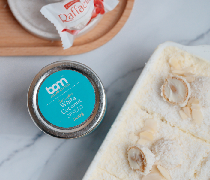 Añadir un tarro de BAM Coconut Spread y harina de coco. Remover para combinar todos los ingredientes uniformemente.