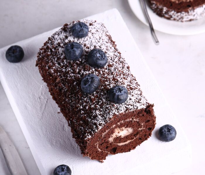La base de bizcocho de este roulade es ligera y aireada, por lo que resulta fácil enrollarla y crear el rollo perfecto. La combinación con la cremosa mezcla de chocolate garantiza un sabor rico e irresistible que se complementa a la perfección con la crema agria. Este toque ácido de la nata contrasta con el dulzor del chocolate, creando un equilibrio de sabores que nos encanta.