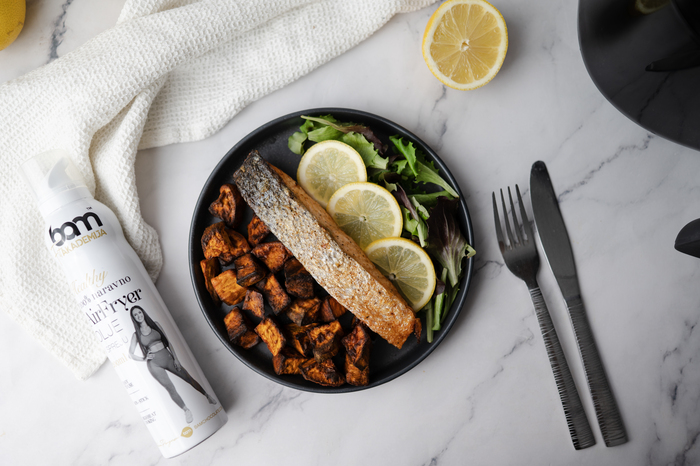 @bamchocolate.com Air Fryer Salmon with Sweet Potato ?? This is a quick, nourishing meal with minimal effort and maximum flavor. Air fryer salmon with sweet potato is a balanced dish that stays juicy on the inside and perfectly roasted on the outside. BAM Air Fryer oil ensures even cooking and brings out the natural flavors of both the salmon and the sweet potato. ? Ingredients Main ingredients • 1 medium sweet potato • BAM Air Fryer oil • salt • black pepper • garlic powder • smoked paprika • 1 salmon fillet For serving • fresh lemon • salad of choice Preparation: Cut the sweet potato into cubes, drizzle with BAM Air Fryer oil, season, and mix well. Cook in the air fryer until crispy on the outside and soft inside.Brush the salmon with BAM Air Fryer oil and seasonings, then cook skin side down in the air fryer until perfectly cooked and juicy. Serve with fresh lemon and a simple salad and enjoy a fast, healthy meal. Save for later and keep this easy air fryer meal ready anytime. #bam #becomeamaster #airfryermeal #salmonrecipe #healthymeall #sweetpotato #healthyrecipe #quickrecipes #airfryerrecipe ♬ original sound - BAM (Become A Master)